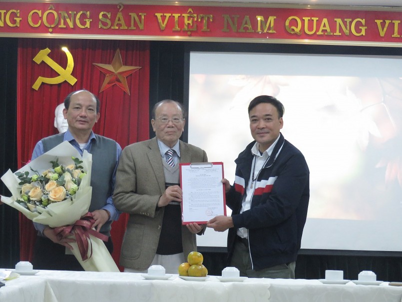 GS.TS Phạm Văn Thiêm – Chủ tịch Trung ương Hội VNPS trao Quyết định thành lập Viện Mỹ phẩm thiên nhiên cho GS.TS Phạm Quốc Long và DS. Nguyễn Xuân Hoàng