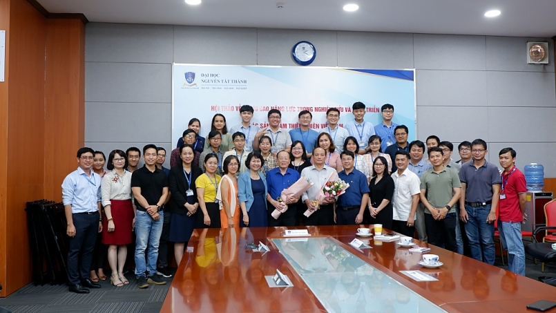 Đoàn công tác Hội VNPS chụp ảnh lưu niệm cùng với lãnh đạo, giảng viên, sinh viên trường ĐH Nguyễn Tất Thành