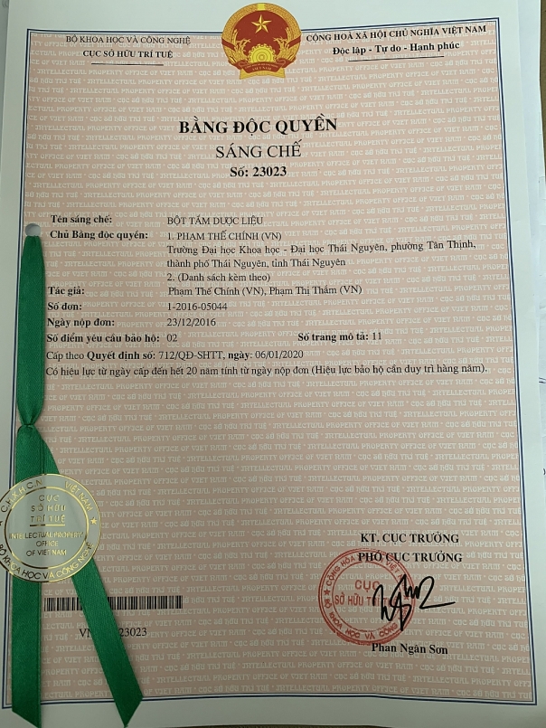 Bằng độc quyền sáng chế Bột tắm dược liệu